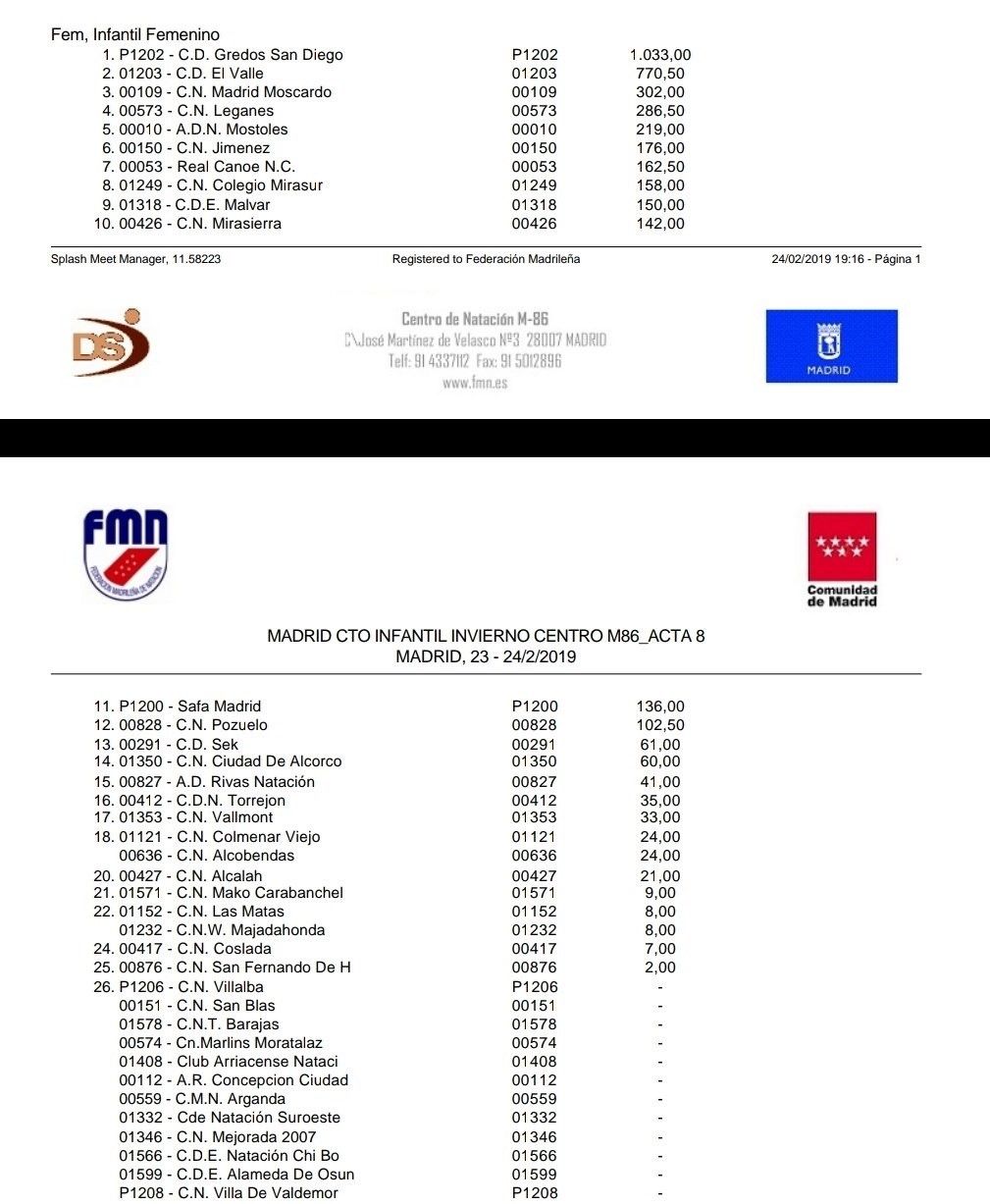 Este fin de semana, se ha nadado el Cto. Infantil de Madrid de Invierno, quedando primer clasificado GSD tanto en categoría masculina, femenina como por equipos.