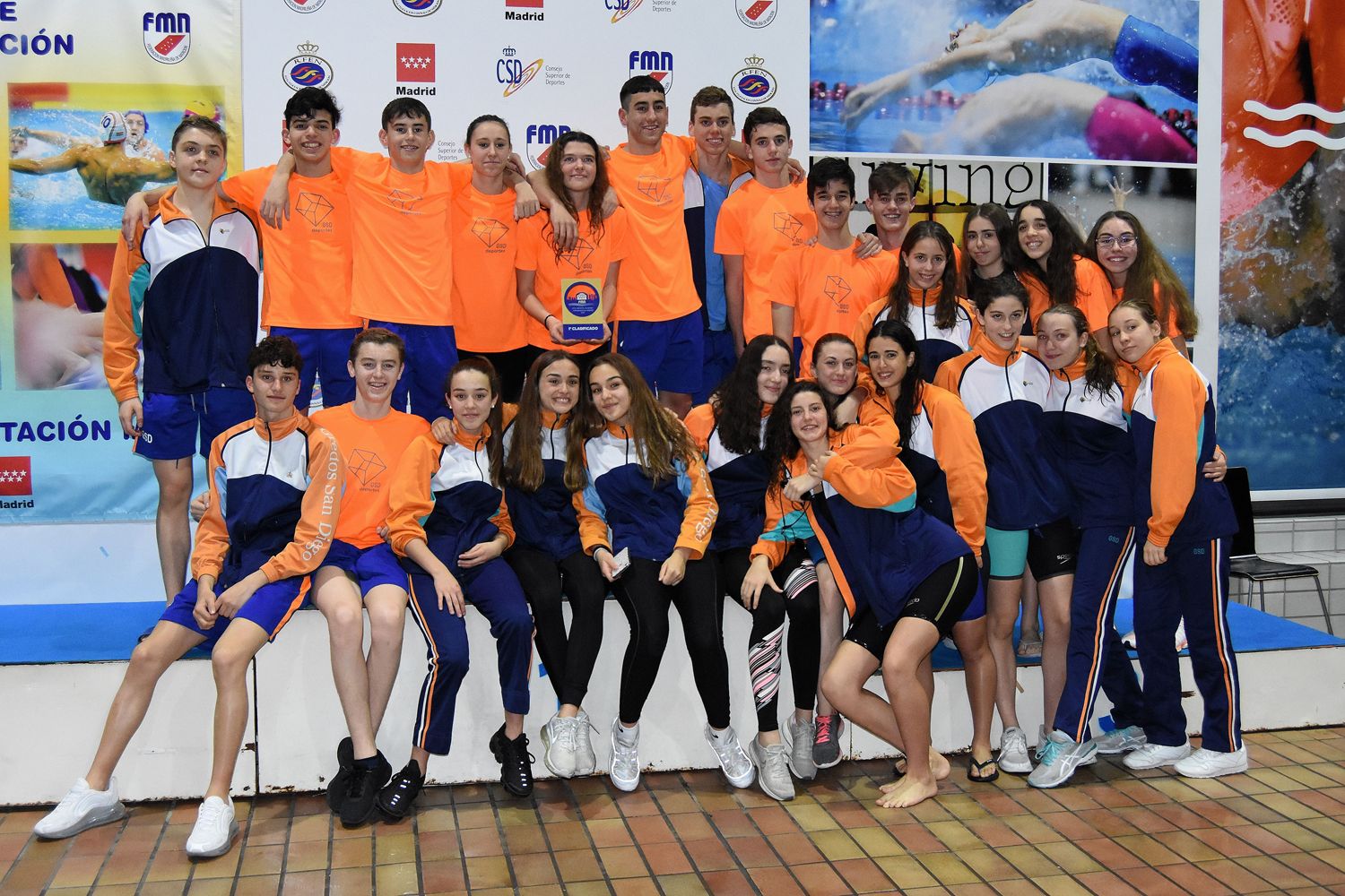 El fin de semana pasado, 22-23 de febrero, se celebró, durante cuatro jornadas, en las instalaciones de la Piscina M-86 el Campeonato de Madrid de natación de la categoría Infantil. Y de nuevo nuestros nadadores y nadadoras tuvieron un papel extraordinario. Consiguieron el primer puesto por equipos, así como múltiples medallas en las diferentes pruebas. También consiguieron el tiempo mínimo necesario para clasificarse para el Cto. de España que se celebrará entre el 12-15 de Marzo en Oviedo.