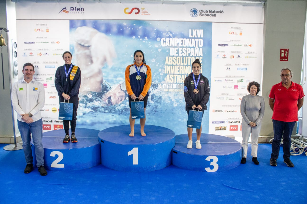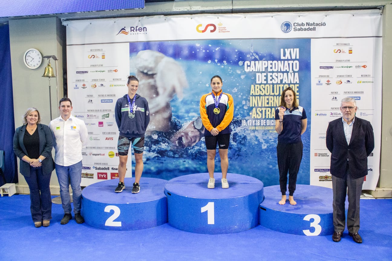 Este campeonato se podría definir con un nombre propio: MARÍA RAMOS NAJJI. Nuestra nadadora, entrenada por Asís Galán Bienes en GSD de Las Rozas, ha sido la gran protagonista de las pruebas femeninas a nivel nacional, donde siendo aún de categoría Junior, ha logrado: RÉCORD DE ESPAÑA ABSOLUTO en la prueba 50m. Braza femenino con una marca de 29.73, rebajando la barrera de los 30 segundos por primera vez en la historia (marca anterior, que ella misma poseía, 30.28); 3 MEJORES MARCAS NACIONALES de 16 años en esta misma prueba, en 100m. Braza femenino con 1.05.29 y en 100m. Estilos femenino con 1.01.06; y un total de 4 medallas individuales y 2 en pruebas de relevos.